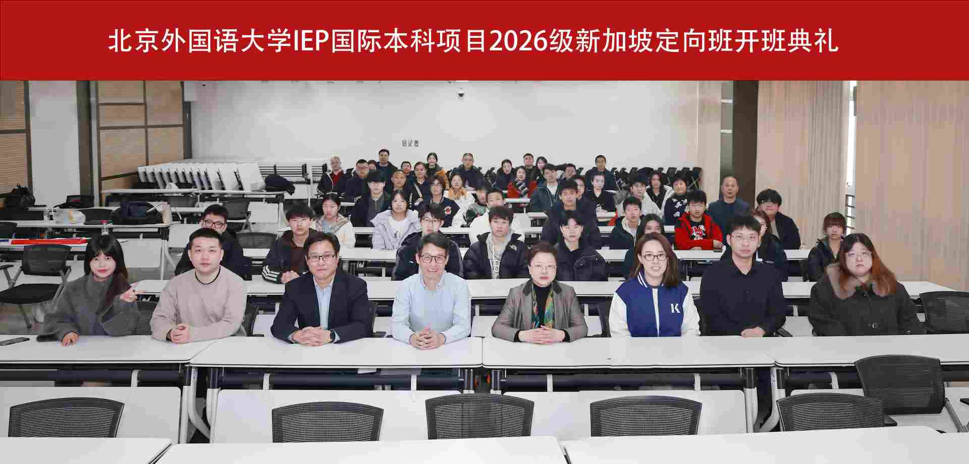 北京外国语大学IEP 2026级(春)新加坡定向班新生开班典礼于3月6日 9点在我校国际大厦401召开,与会领导有北京外国语大学网络教育学院副院长陈贵龙,北京外国语大学网络教育学院党总支书记张琳,新加KAPLAN学院大陆地区负责人嵩老师,新加坡留服中心(SSSC)学术负责人张奇博士。